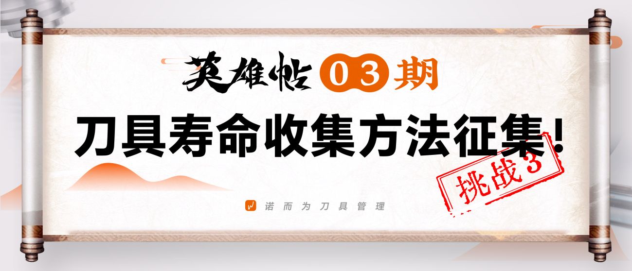 开放合作与交流:诺而为一直致力于提升刀具寿命管理的效率和准确性,通过本期“英雄帖”,我们希望能够集结业内技术/运营达人,共同探讨刀具实际寿命收集与精益管理的新方法、新思路。