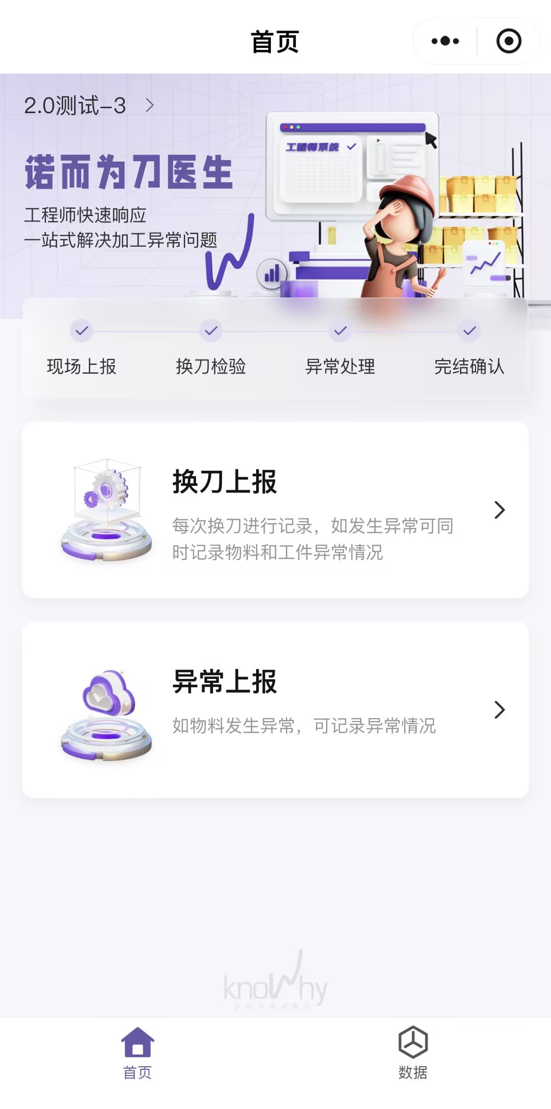 先说我们的探索:在2023年中,我们上线了换刀上报功能,员工们将换刀的情况实时记录,包括换刀时间、使用时长和换刀原因等信息。这一功能为刀具寿命的收集提供了有力的数据支持,员工可通过微信、钉钉等企业小程序实现收集。